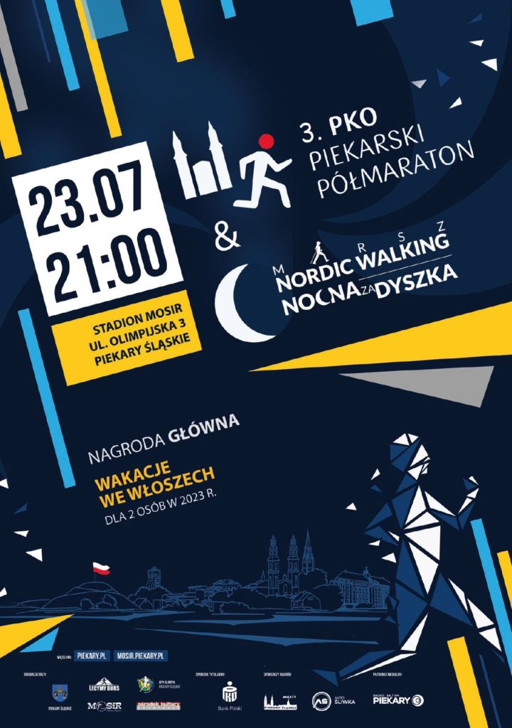 3. PKO Piekarski Półmaraton to rywalizacja, która sprawi, że nasze miasto stanie się prawdziwą nocną stolicą biegów. 23 lipca o godzinie 21.00 setki biegaczy i walkerów zgromadzą się na terenie Miejskiego Ośrodka Sportu i Rekreacji przy ulicy Olimpijskiej 3, by wspólnie wziąć udział w sportowych zmaganiach. Uczestnicy wydarzenia będą mogli wystartować zarówno w zawodach na dystansie 21,0975 km (Piekarski Półmaraton), jak i w towarzyszącym im biegu pod nazwą Nocna zaDyszka, którego dystans wyniesie 10 km, oraz w zawodach Nordic Walking, jakie rozstrzygnięte zostaną na odcinku 8 km. Podczas imprezy w godzinach popołudniowych przewidywane są również konkurencje biegowe dla najmłodszych pasjonatów sportu.