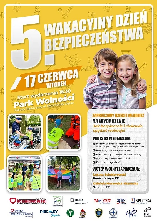 Dziś odbędzie się 5. Wakacyjny Dzień Bezpieczeństwa w Parku Wolności przy ul. Ziętka w Szarleju. Wydarzenie, które rozpocznie się o godzinie 16:30, to doskonała okazja, by w przystępny sposób dowiedzieć się, jak bezpiecznie i ciekawie spędzić wakacje. Wstęp na wydarzenie jest wolny, a program pełen atrakcji!