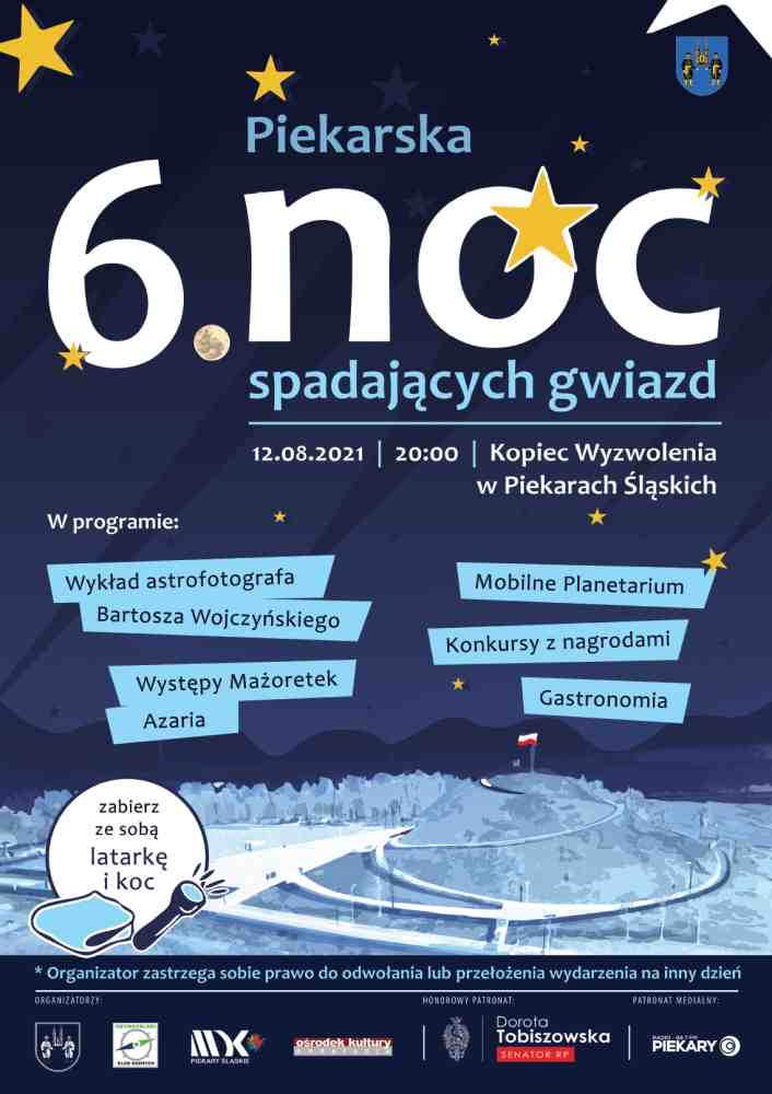 W czwartek, 12 sierpnia, po raz szósty na terenie przy Kopcu Wyzwolenia odbędzie się Piekarska Noc Spadających Gwiazd.