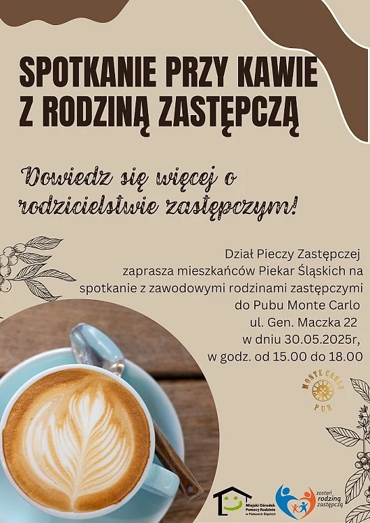 Z okazji Dnia Rodzicielstwa Zastępczego, Miejski Ośrodek Pomocy Rodzinie w Piekarach Śląskich zaprasza mieszkańców na inspirujące wydarzenie pt. „Spotkanie przy kawie z rodziną zastępczą”.
