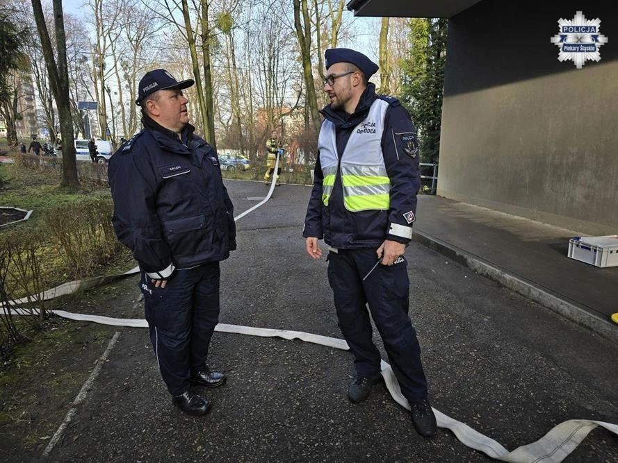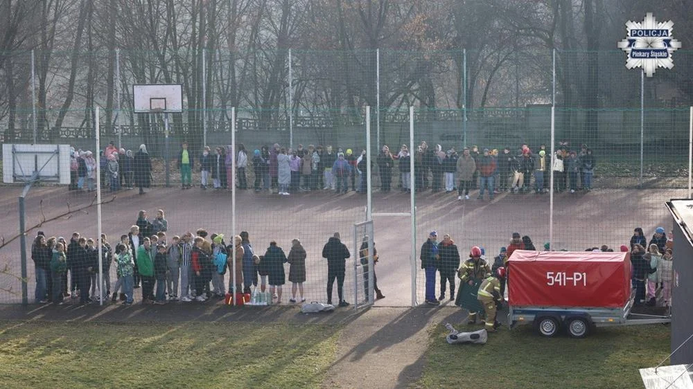 W czwartek, w Szkole Podstawowej nr 2 w Piekarach Śląskich odbyły się ćwiczenia służb ratunkowych pod kryptonimem „Ewakuator”. Scenariusz symulował pożar w budynku szkoły, ewakuację uczniów i pracowników oraz obecność uzbrojonego napastnika, który zabarykadował się w jednym z pomieszczeń z zakładnikiem. Ćwiczenia miały na celu sprawdzenie procedur ewakuacyjnych oraz współpracę między policją, strażą pożarną, strażnikami miejskimi i innymi służbami.