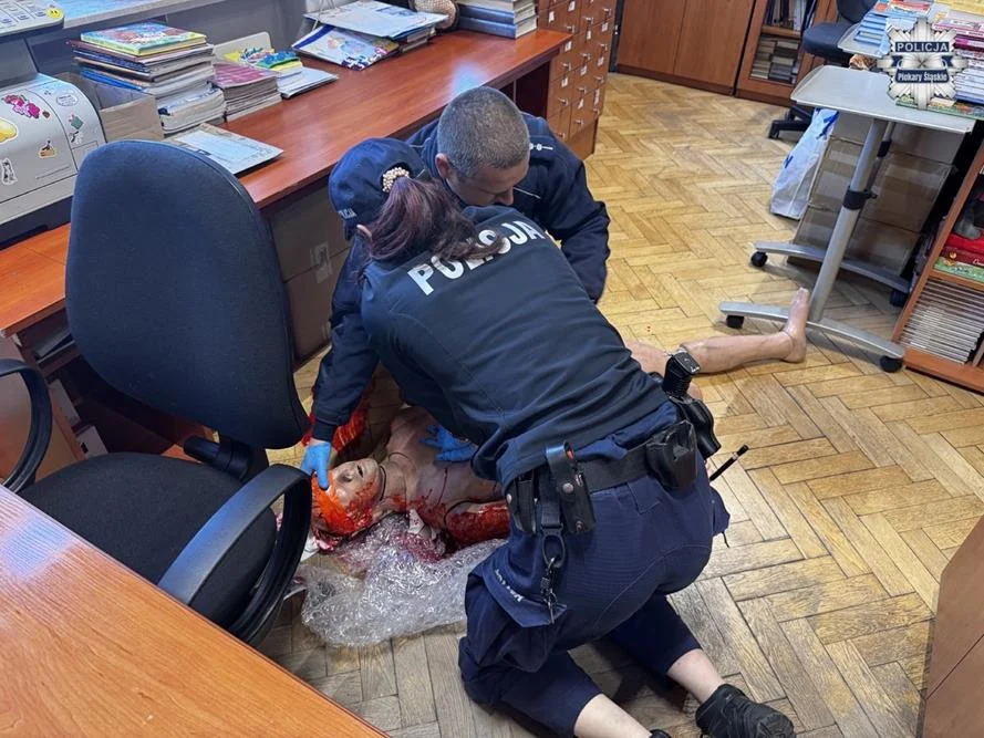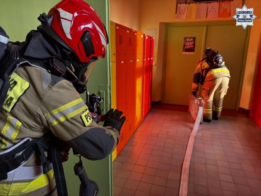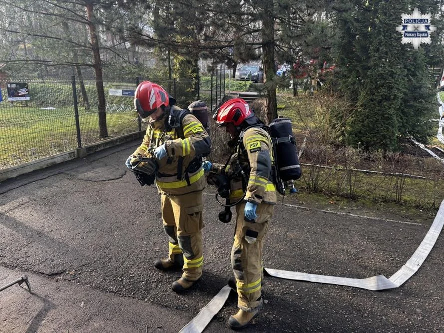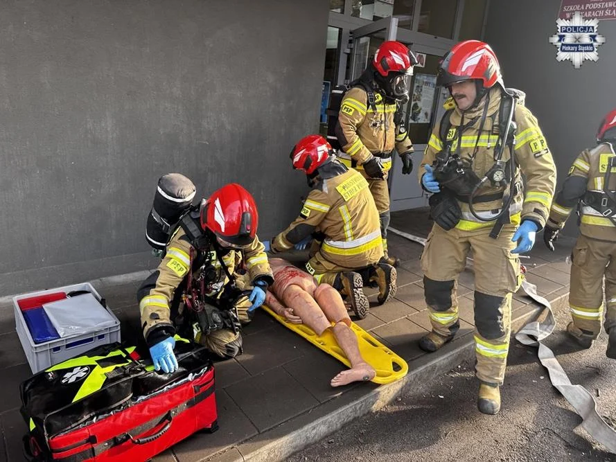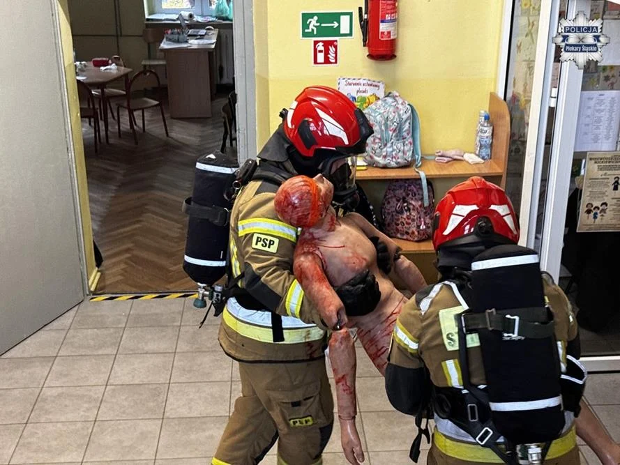 Ćwiczenia służb ratunkowych w Piekarach Śląskich: ewakuacja uczniów i walka z napastnikiem