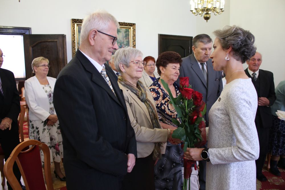 – Uroczystość taka jak dzisiejsza jest dla mnie wielkim przeżyciem i zaszczytem, cieszę się że mogę w niej uczestniczyć jako Prezydent Piekar Śląskich. Kiedy widzę tak wspaniałe pary jak Wy, które przeżyły wspólnie pięćdziesiąt i sześćdziesiąt, a czasem więcej lat to w sercu mam poczucie dumy i wielkiej radości. Szczycę się, że w naszym mieście jest tak wiele par o długim stażu. Jesteście najlepszym dowodem na to, że przysięgi małżeńskiej należy dotrzymać. Składam Państwu serdeczne życzenia wielu wspólnych lat w szczęściu i zdrowiu – powiedziała Prezydent Miasta Piekary Śląskie Sława Umińska-Duraj.