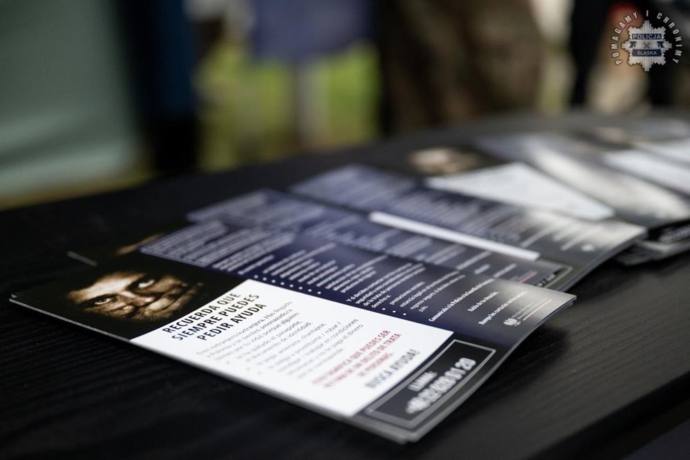 Na miejscu działały również policyjne stoiska profilaktyczne, przy których funkcjonariusze – w tym asp. Aleksandra Zydyk i st. asp. Szymon Czysz – prowadzili rozmowy z młodzieżą i mieszkańcami na temat zagrożeń związanych z handlem ludźmi. Uczestnicy otrzymali broszury informacyjne oraz praktyczne wskazówki, jak rozpoznać symptomy przestępczego procederu i jak się przed nim chronić.