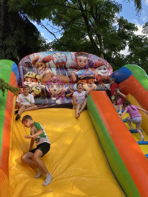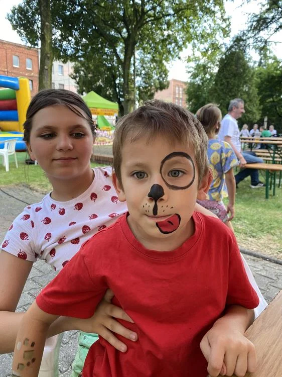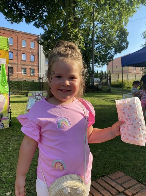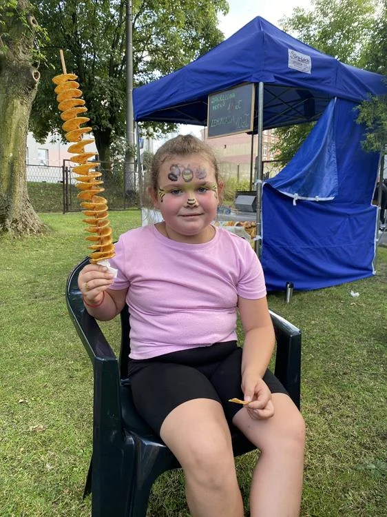 Dzieci mogły korzystać z rozmaitych atrakcji, takich jak malowanie twarzy, brokatowe tatuaże, popcorn, wata cukrowa czy zakręcone frytki – wszystko to wywołało mnóstwo uśmiechów i entuzjazmu. Wspaniała atmosfera festynu sprzyjała wspólnej zabawie i radosnym chwilom.