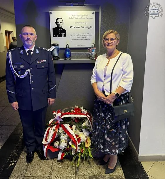 O godzinie 10:00 rozpoczęły się obchody rocznicowe w Komendzie Miejskiej Policji w Piekarach Śląskich, gdzie złożono wiązanki kwiatów pod tablicą upamiętniającą Wiktora Szwagla. Kwiaty złożyli m.in. Komendant Miejski Policji w Piekarach Śląskich insp. Paweł Dratwiński oraz piekarscy policjanci, a także Poseł na Sejm RP Jerzy Polaczek, Zastępca Prezydenta Miasta Piekary Śląskie Krzysztof Ślusarczyk, Wiceprzewodnicząca Rady Miasta Piekary Śląskie Klaudia Franiel, Prezes Stowarzyszenia Rodzina Policyjna 1939 r., przedstawiciele służb mundurowych oraz lokalnych instytucji i urzędów.