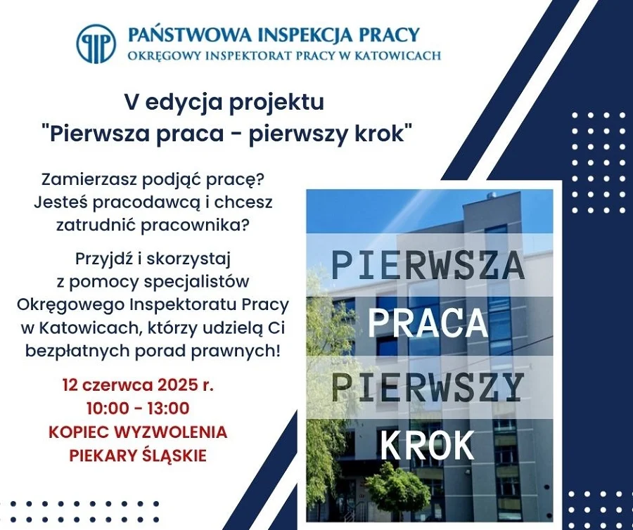 12 czerwca, w ramach Finału Wojewódzkiego konkursu „Najlepszy policjant ruchu drogowego”, w Piekarach Śląskich odbędzie się inauguracyjne spotkanie V edycji projektu „Pierwsza praca – pierwszy krok”. Projekt ten, realizowany przez Okręgowy Inspektorat Pracy w Katowicach, ma na celu edukację młodych osób, które przygotowują się do wejścia na rynek pracy i podjęcia pierwszego zatrudnienia.