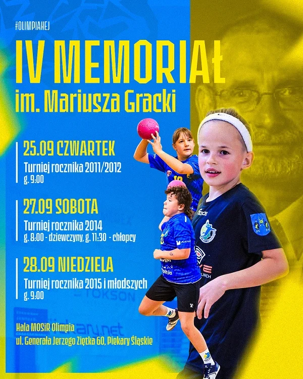 Memoriał zainauguruje w czwartek, 25 września, turniej roczników 2011/2012. W sobotę do rywalizacji staną dziewczęta i chłopcy z rocznika 2014. Tego samego dnia o godzinie 17:00 pierwszy zespół MKS Olimpia MEDEX Piekary Śląskie rozegra mecz ligowy z NLO SMS ZPRP Kielce II.