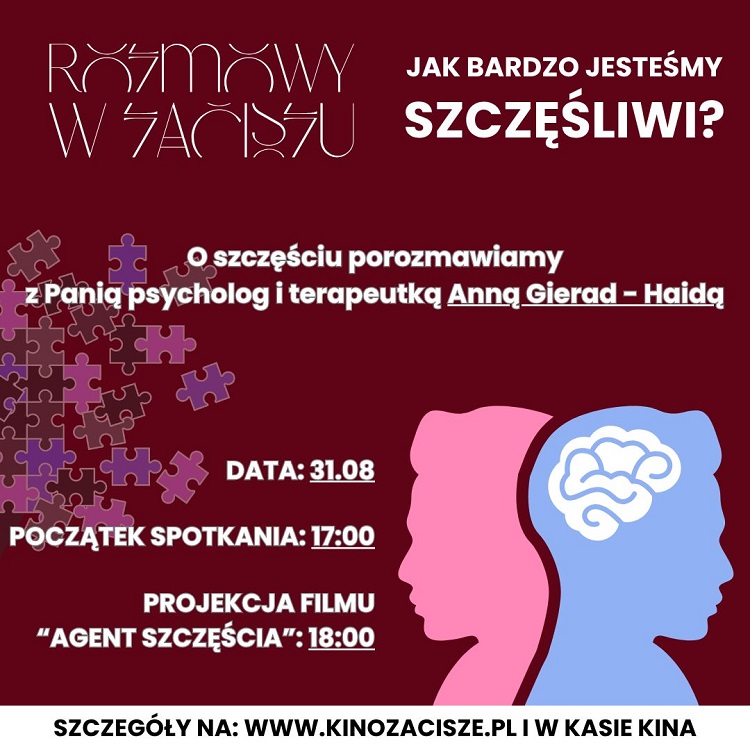 To spotkanie to szansa na refleksję nad własnym poczuciem szczęścia, inspirującą rozmowę z ekspertką i miłe zakończenie wieczoru w towarzystwie dobrego filmu.