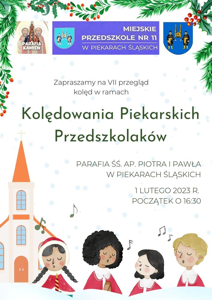 Już w najbliższą środę, 1 lutego 2023 r. o godz. 16.30 w Parafii św. Apostołów Piotra i Pawła w Piekarach Śląskich – Kamieniu, spotkają się piekarscy przedszkolacy, by wspólnie kolędować.