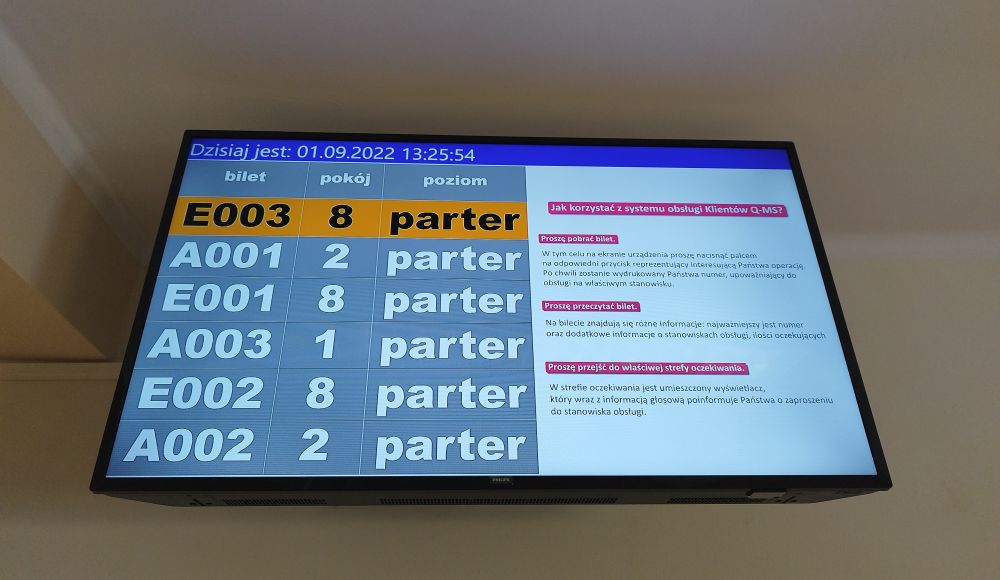 Od września 2020 roku podobne urządzenie działa w Wydziale Komunikacji Urzędu Miasta Piekary Śląskie i umieszczone jest na 1 piętrze budynku UM przy ulicy Bytomskiej 84 (pomiędzy pokojami 103 i 104). Korzystający z urządzenia wybiera interesującą go usługę i drukuje bilet. Potem oczekuje na wezwanie do konkretnego pokoju (informacja jest wyświetlana na ekranie umieszczonym na korytarzu i emitowana w postaci komunikatu dźwiękowego).