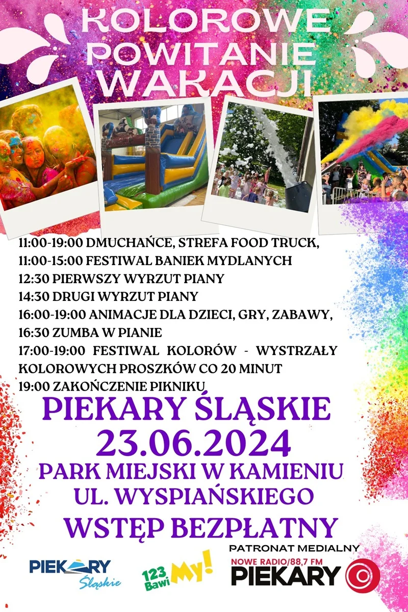 Już w tę niedzielę, 23 czerwca, odbędzie się piknik rodzinny „Kolorowe Powitanie Wakacji”, który zaprasza wszystkich mieszkańców Piekar Śląskich do wspólnej zabawy i świętowania nadchodzących wakacji. Impreza odbędzie się w Kamieniu, przy ulicy Wyspiańskiego, w godzinach 11:00-19:00.