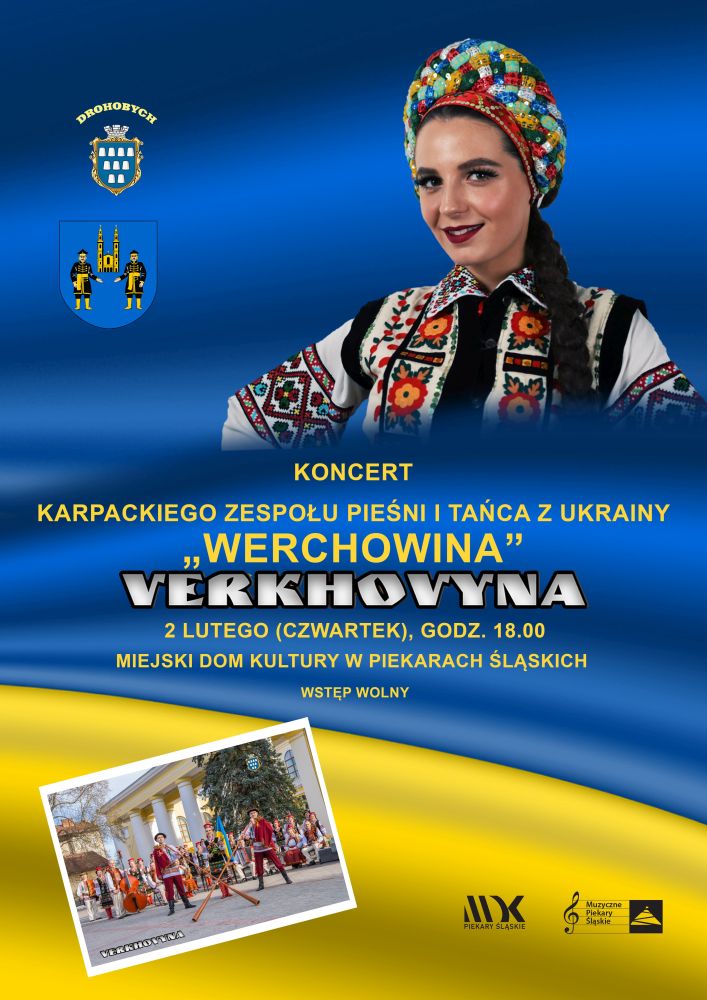 Miejski Dom Kultury w Piekarach Śląskich zaprasza 2 lutego o godz. 18.00 na koncert Karpackiego Zespołu Pieśni i Tańca Ukrainy „Werchowina”.
