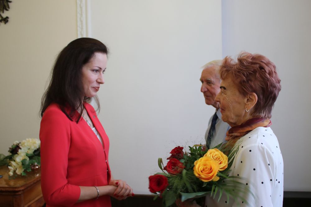 – Jako Prezydent Miasta bardzo się cieszę, że mamy takich mieszkańców, bowiem to Wy pokazujecie, jak należy budować trwałe związki. Drodzy jubilaci, życzę zdrowia Wam i wszystkim Waszym bliskim, abyście mogli wspólnie, jeszcze przez długie lata, cieszyć się życiem. Bądźcie nadal wzorem dla Waszych dzieci, wnuków i prawnuków, ponieważ nie ma piękniejszego oraz większego dokonania niż udany i długi związek małżeński. Witajcie każdy dzień z uśmiechem, niezależnie czy będzie on słoneczny czy deszczowy, czerpcie radość z rzeczy małych, a przede wszystkim cieszcie się sobą i delektujcie się wspólnym szczęściem – mówiła podczas dzisiejszych uroczystości Prezydent Miasta Piekary Śląskie Sława Umińska-Duraj.