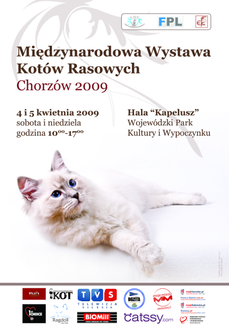 W dniach 4 i 5 kwietnia 2009 roku w Hali Wystawowej “Kapelusz” w Wojewódzkim Parku Kultury i Wypoczynku odbędzie się Międzynarodowa Wystawa Kotów Rasowych “Chorzów 2009” organizowana przez Śląski Klub Miłośników Kotów Rasowych w Katowicach