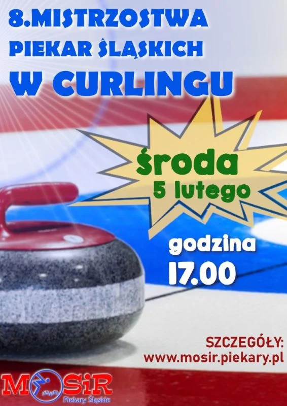 Miejski Ośrodek Sportu i Rekreacji zaprasza na VIII Mistrzostwa Piekar Śląskich w Curlingu. Zachęcamy wszystkich mieszkańców niezależnie od płci i wieku do udziału w zawodach na plenerowym lodowisku piekarskiego MOSiR-u przy ul. Olimpijskiej 3.