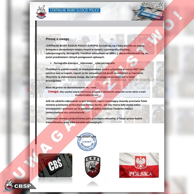Nie daj się oszukać! Uwaga na fałszywe e-maile podszywające się pod CBŚP