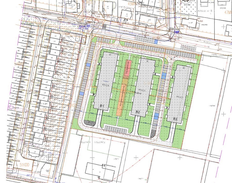 - miejscami parkingowymi od strony drogi dojazdowej.