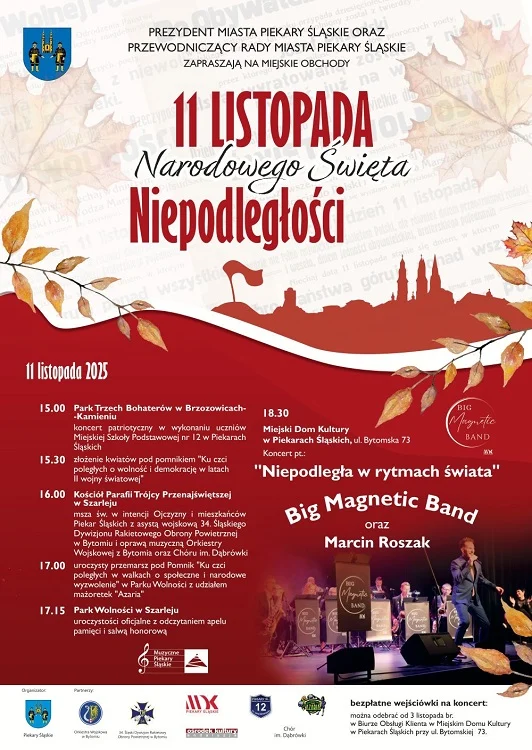 Na zakończenie obchodów, o 18:30, w Miejskim Domu Kultury przy ul. Bytomskiej 73 odbędzie się koncert pt. „Niepodległa w rytmach świata”, w wykonaniu Big Magnetic Band oraz Marcina Roszaka. Wstęp na koncert jest bezpłatny, a wejściówki można odebrać od 3 listopada w Biurze Obsługi Klienta MDK.