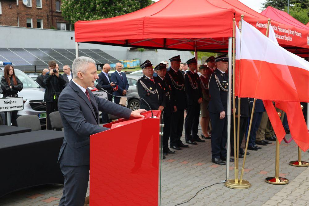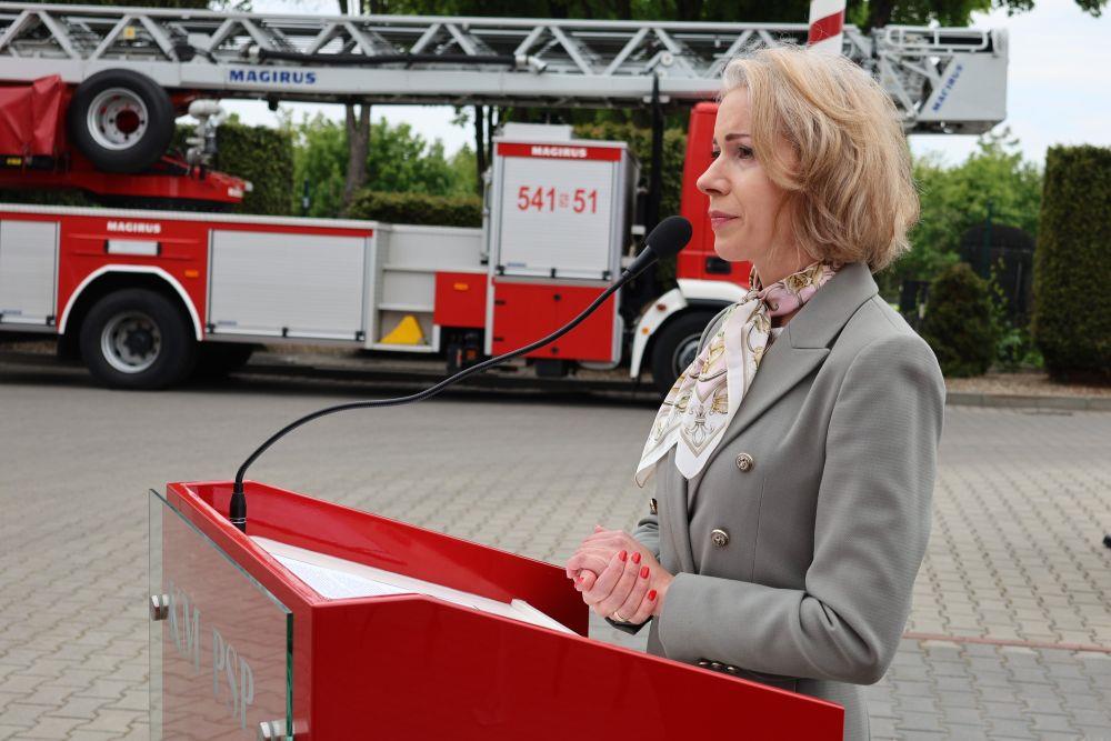 Prezydent Piekar Śląskich w swoim wystąpieniu podziękowała strażakom za ich codzienną gotowość do niesienia pomocy, podkreślając ich odwagę i profesjonalizm w działaniu. Złożyła gratulacje wszystkim wyróżnionym i awansowanym funkcjonariuszom, doceniając ich trud i zaangażowanie w służbie na rzecz mieszkańców Piekar Śląskich.