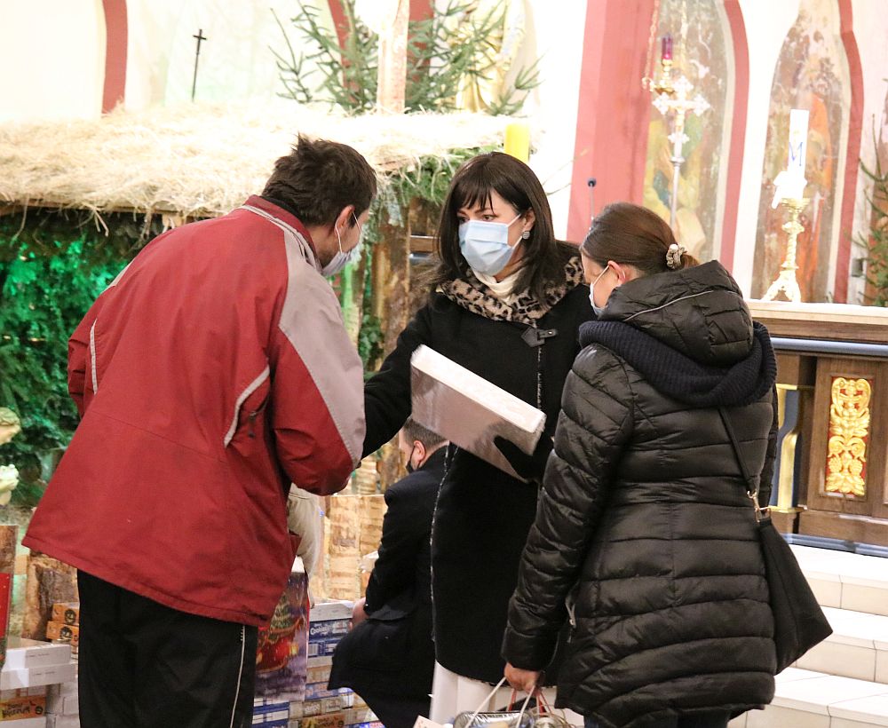 Podarunki w postaci paczek żywnościowych wręczali zebranym Sława Umińska-Duraj – Prezydent Miasta Piekary Śląskie oraz Tomasz Wesołowski – Przewodniczący Rady Miasta Piekary Śląskie.