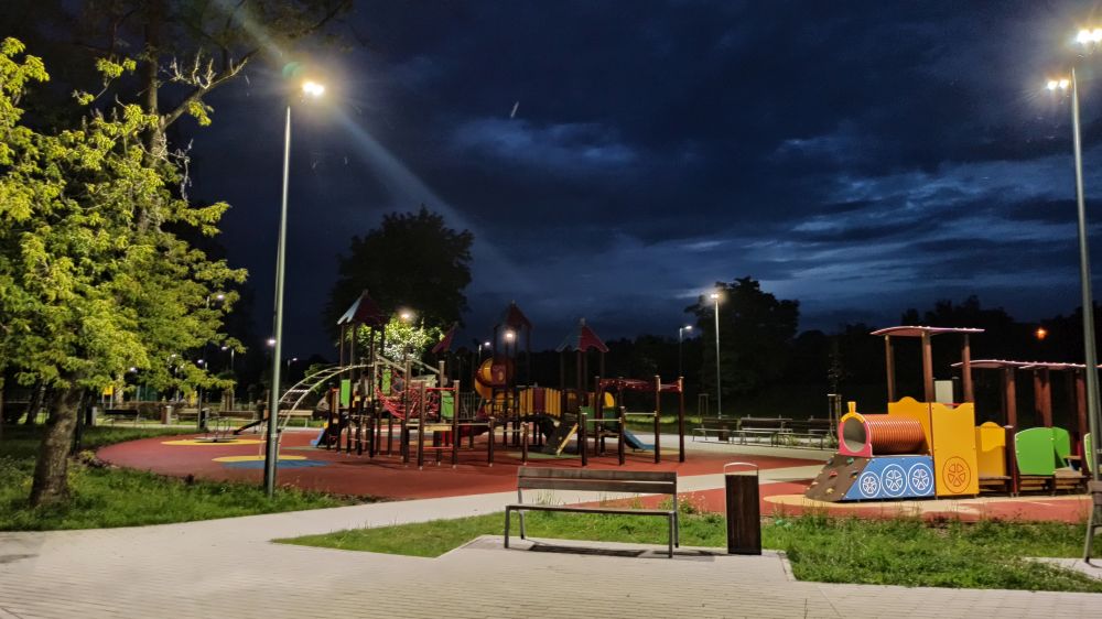 Na poniższym zdjęciu widać różnice między oświetleniem ze starych lamp sodowych (żółta barwa) i nowych ledowych ( jasna barwa).
