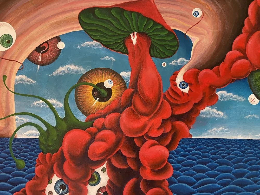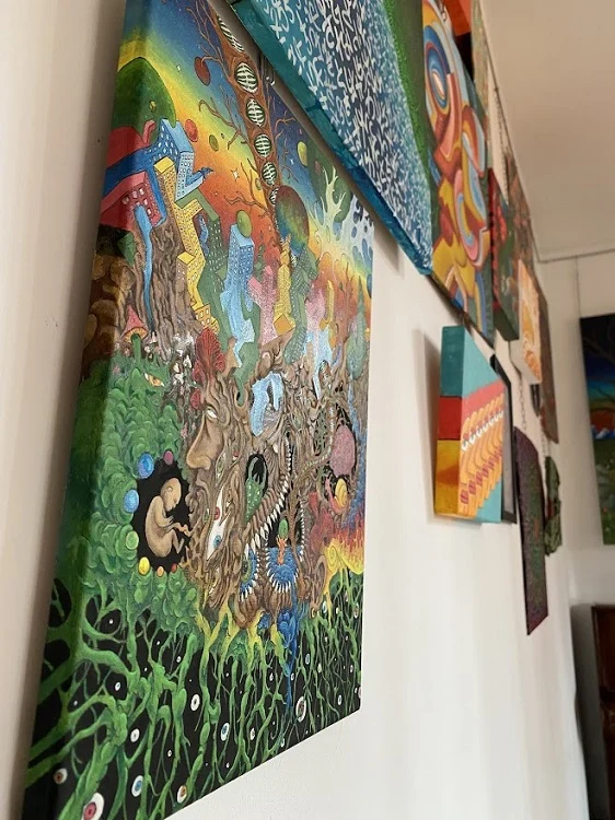 Jego twórczość wyróżnia się eksperymentami ze światłem naturalnym, RGB i UV, co nadaje obrazom wyjątkową energię i głębię. Na wystawie można zobaczyć zarówno barwne kompozycje, jak i czarno-białe dzieła, które przypominają drzeworyty.