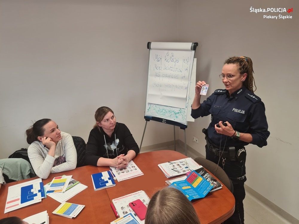 Tematem przewodnim spotkania piekarskich policjantów z obywatelami Ukrainy było szeroko pojęte bezpieczeństwo. Mundurowi odpowiedzieli na liczne pytania uczestników oraz radzili m.in. co zrobić, by nie paść ofiarą handlu ludźmi oraz jak nie dać się oszukać.