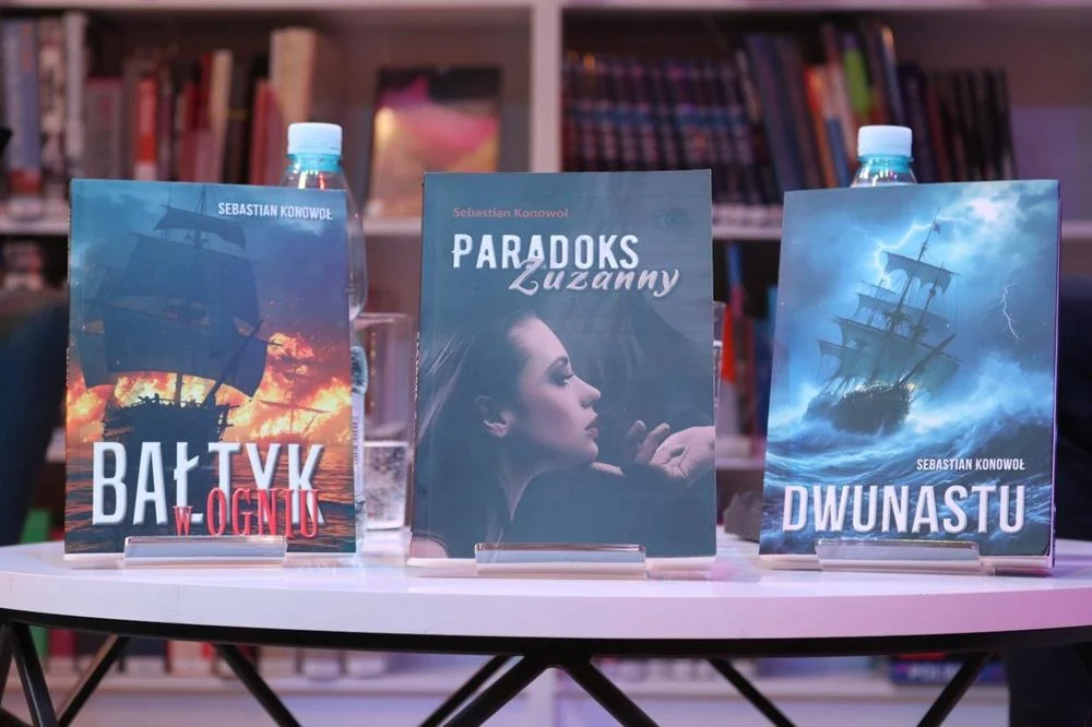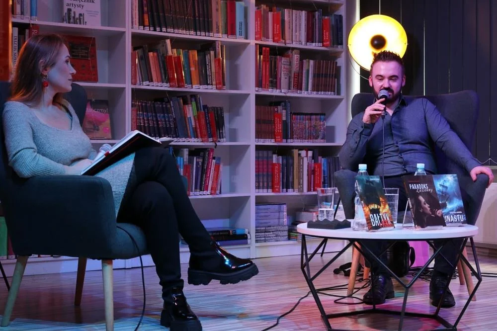 Podczas spotkania Sebastian Konowoł opowiadał o kulisach swojej twórczej zmiany — od tematyki historycznej w stronę thrillera opartego na napięciu i psychologicznym pojedynku.