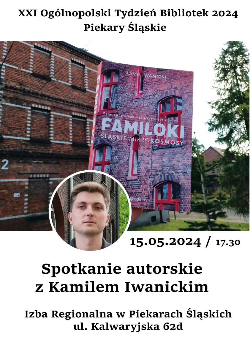 15 maja o godzinie 17:30 w budynku centralnym Miejskiej Biblioteki Publicznej im. Teodora Heneczka w Piekarach Śląskich, odbędzie się spotkanie z Kamilem Iwanickim – autorem książki pt. ” Familoki. Śląskie mikrokosmosy”. Spotkanie to poprowadzi Łukasz Żywulski.