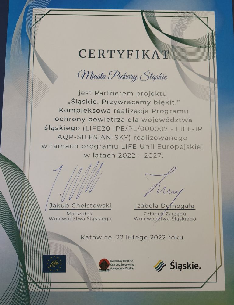 W Urzędzie Marszałkowskim Województwa Śląskiego w Katowicach uroczyście podpisano umowę o dofinansowanie projektu „Śląskie. Przywracamy błękit” ze środków zNFOŚiGW. W podpisaniu umowy uczestniczyli Jakub Chełstowski, marszałek Województwa Śląskiego, Izabela Domogała, członek Zarządu Województwa Śląskiego i Paweł Mirowski, zastępca prezesa Zarządu NFOŚiGW.