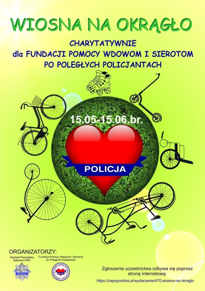 Komenda Miejska Policji w Piekarach Śląskich zaprasza wszystkich chętnych do udziału w wirtualnej akcji charytatywnej na rzecz Fundacji Pomocy Wdowom i Sierotom po Poległych Policjantach „Wiosna na okrągło”.
