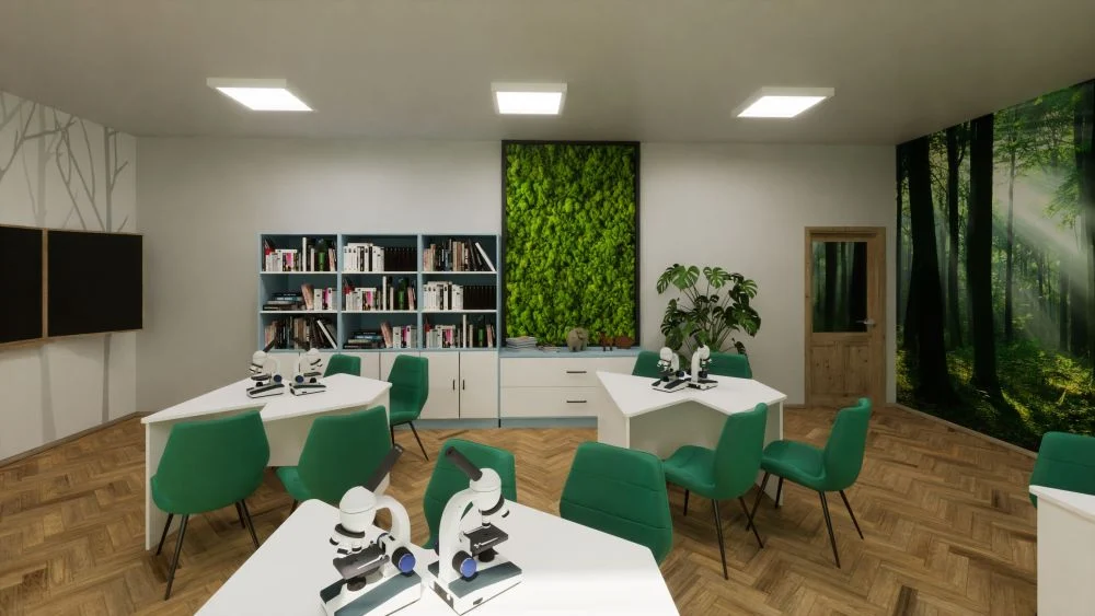 Opracowany został projekt modernizacji jednej z pracowni, która ma szansę przeobrazić się w nowoczesną Zieloną Pracownię – dostosowaną do potrzeb i możliwości uczniów z niepełnosprawnościami. Będzie ona jednocześnie kontynuacją inicjatywy, w ramach której w ubiegłym roku, otwarty został przepiękny szkolny ogród botaniczno-sensoryczny.
