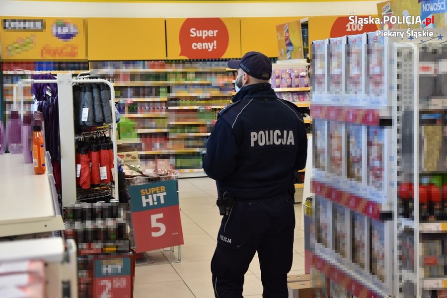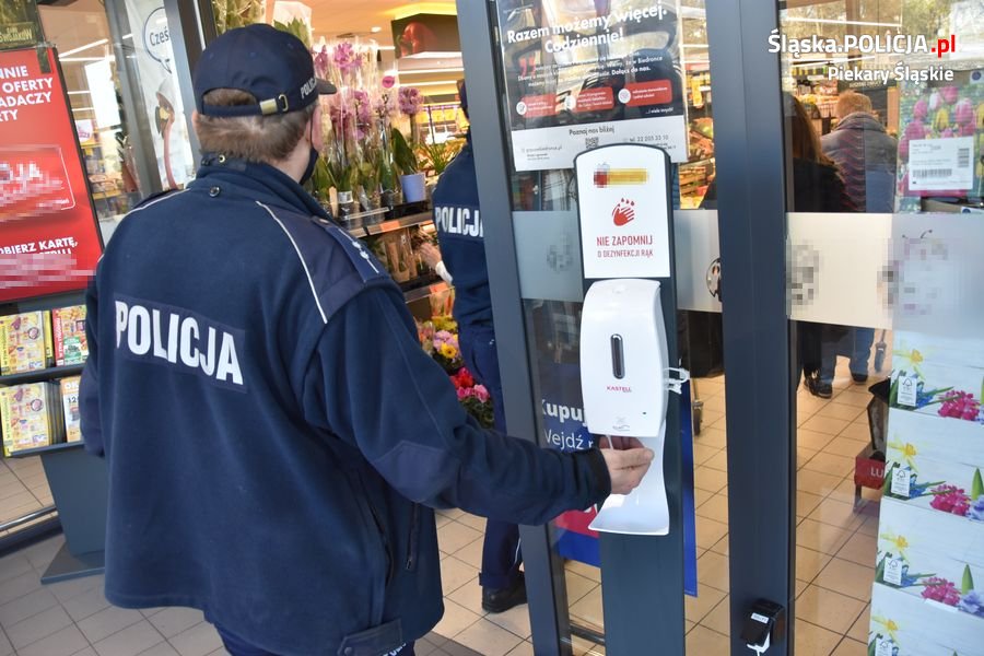 Policjanci kontrolują przestrzeganie przepisów sanitarnych
