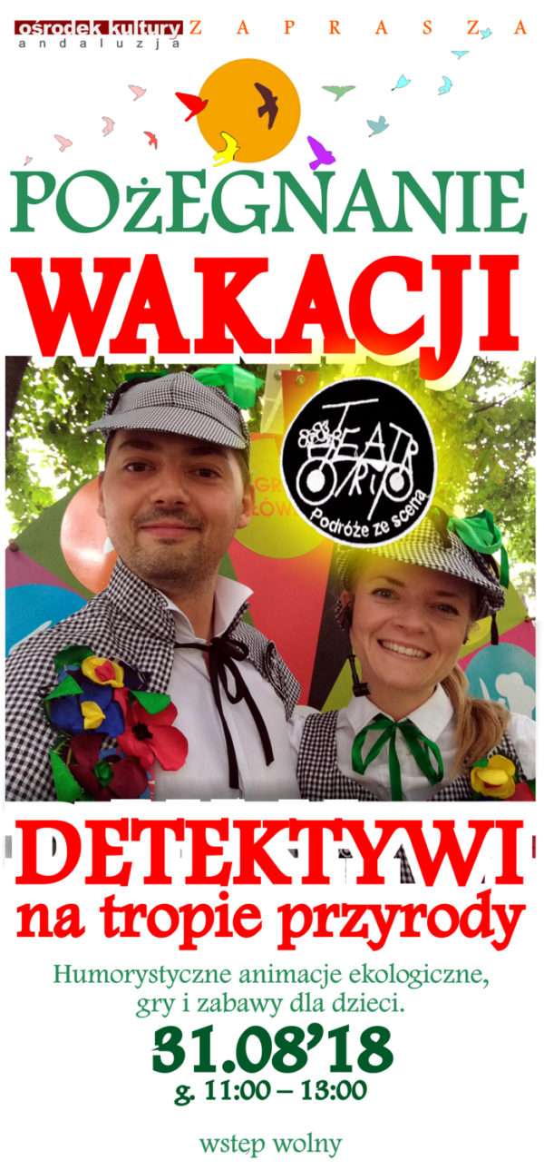 Wakacje nieubłaganie dobiegają końca. Dwa miesiące letniej beztroski i szaleństwa już za nami. Zanim usłyszymy jednak dźwięk pierwszego dzwonka, zapraszamy wszystkie dzieci na imprezę “Detektywi na tropie przyrody”, organizowaną przez Ośrodek Kultury Andaluzja w Piekarach Śląskich.