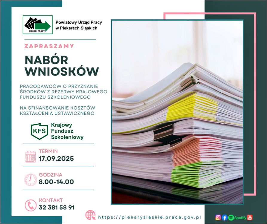 Powiatowy Urząd Pracy w Piekarach Śląskich ogłosił nabór wniosków o przyznanie środków z rezerwy Krajowego Funduszu Szkoleniowego. Pracodawcy mogą ubiegać się o dofinansowanie kosztów kształcenia ustawicznego pracowników.