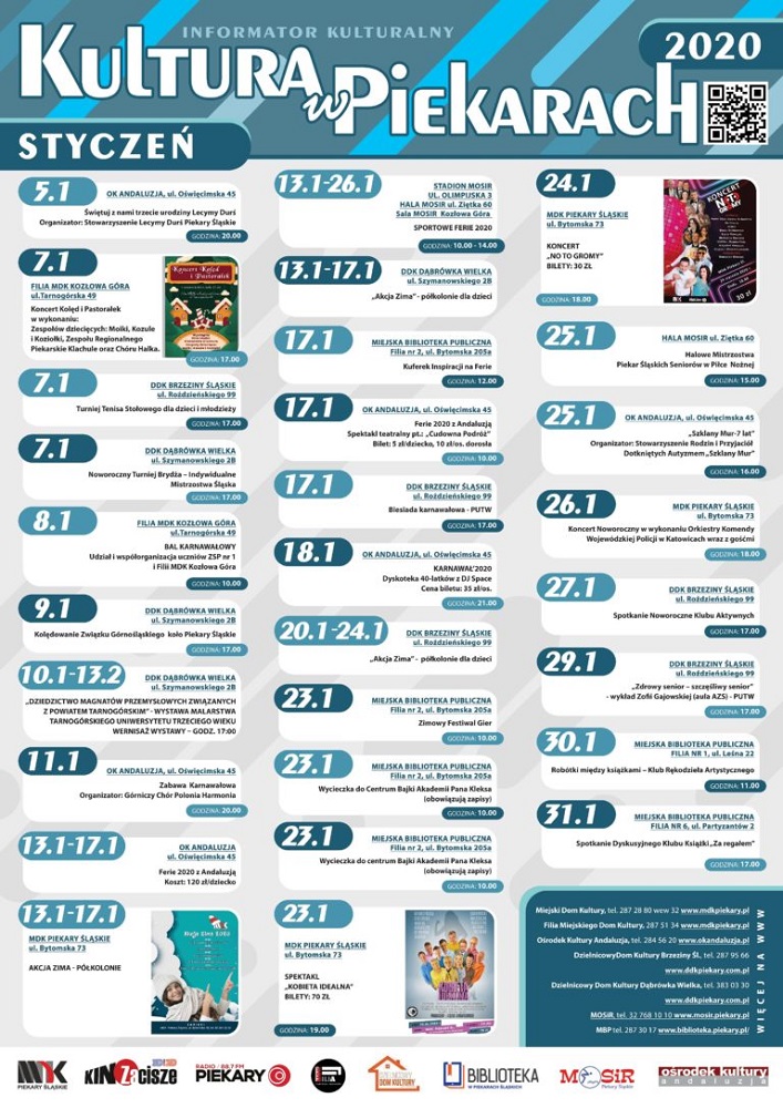 Rok 2019 zmierza ku końcowi, dlatego warto już teraz zastanowić się nad tym, jak zaplanować, pod względem kulturalnym, styczeń 2020 roku. Jakie propozycje mają dla miłośników wydarzeń kulturalnych piekarskie placówki?