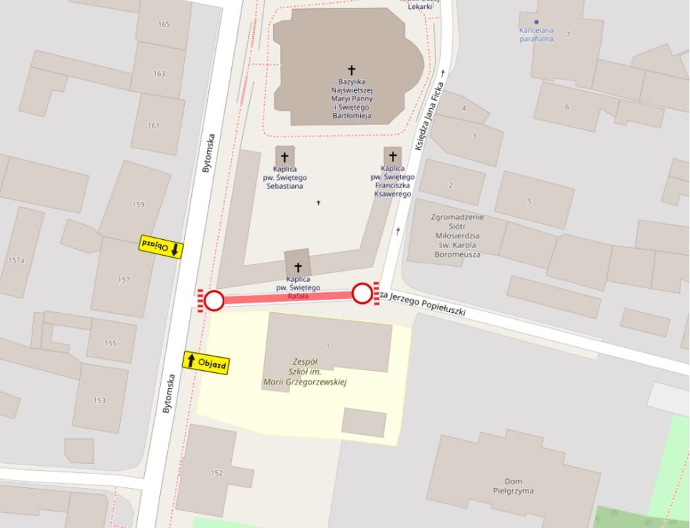 W związku z remontem drogowym ul. Popiełuszki, od 15 października zostanie zamknięty dla ruchu drogowego odcinek od ul. Bytomskiej do ul. Ks. Jana Ficka. Ze względów technologicznych prace na tym odcinku potrwają do dwóch tygodni, w czasie których wprowadzona zostanie tymczasowa organizacja ruchu.