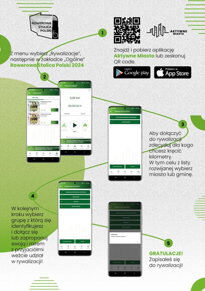 Pamiętaj! Można wziąć udział albo w rywalizacji dla miast, albo dla gmin. Musisz zdecydować, dla kogo kręcisz kilometry!
