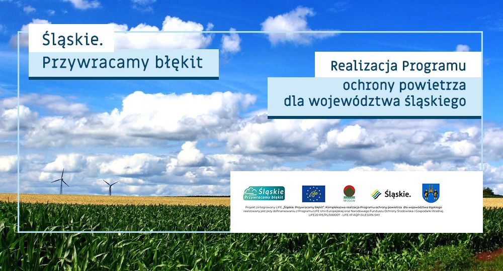 “Śląskie. Przywracamy błękit” to projekt, którego nadrzędnym celem jest sprawna i efektywna realizacja Programu ochrony powietrza dla województwa śląskiego, który w roku 2020 został przyjęty przez Sejmik Województwa Śląskiego. Główny cel jest zbieżny z priorytetowym celem Programu ochrony powietrza tj. opracowaniem i wdrożeniem działań naprawczych, których realizacja doprowadzi do poprawy jakości powietrza, co w konsekwencji spowoduje ograniczenie niekorzystnego wpływu zanieczyszczeń powietrza na zdrowie i życie mieszkańców województwa śląskiego. Podjęte w ramach projektu działania umożliwią znaczące przyspieszenie tempa wymiany urządzeń grzewczych małej mocy (poniżej 1MW) opalanych paliwami stałymi w sektorze komunalno-bytowym, co stanowi główne źródło sytuacji problemowej na terenie województwa. Istotną częścią projektu jest też podniesienie poziomu wiedzy w różnych grupach docelowych w zakresie niskiej emisji oraz działań zapobiegawczych.