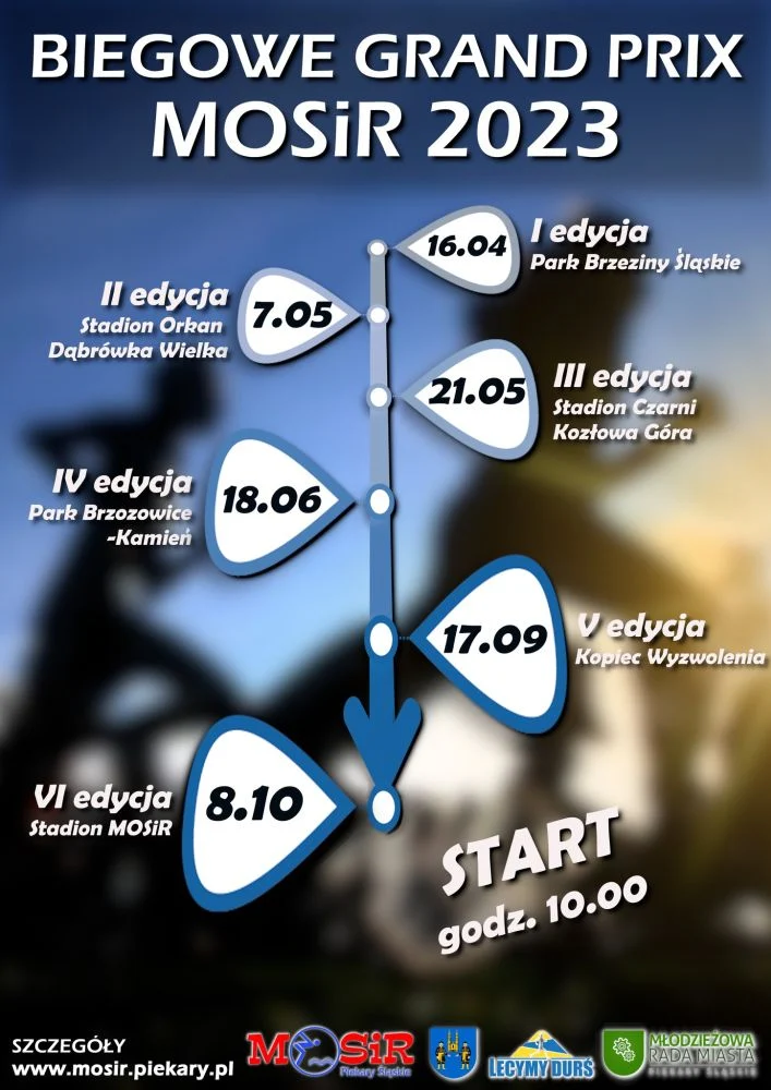 Miejski Ośrodek Sportu i Rekreacji organizuje Biegowe Grand Prix 2023, na które składa się sześć edycji. Wszystkie biegi i marsze odbędą się w różnych rejonach miasta w miesiącach: kwiecień, maj, czerwiec, wrzesień oraz bieg finałowy w październiku. Tegoroczna pierwsza część rozpocznie się już – 16 kwietnia o godz. 10.00 w park w Brzezinach Śląskich.