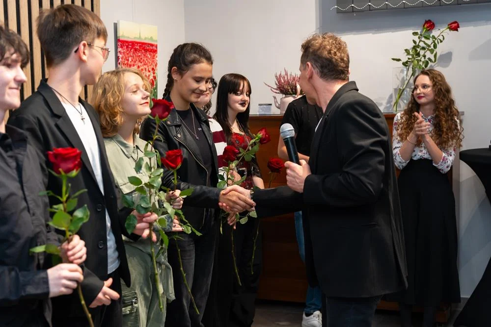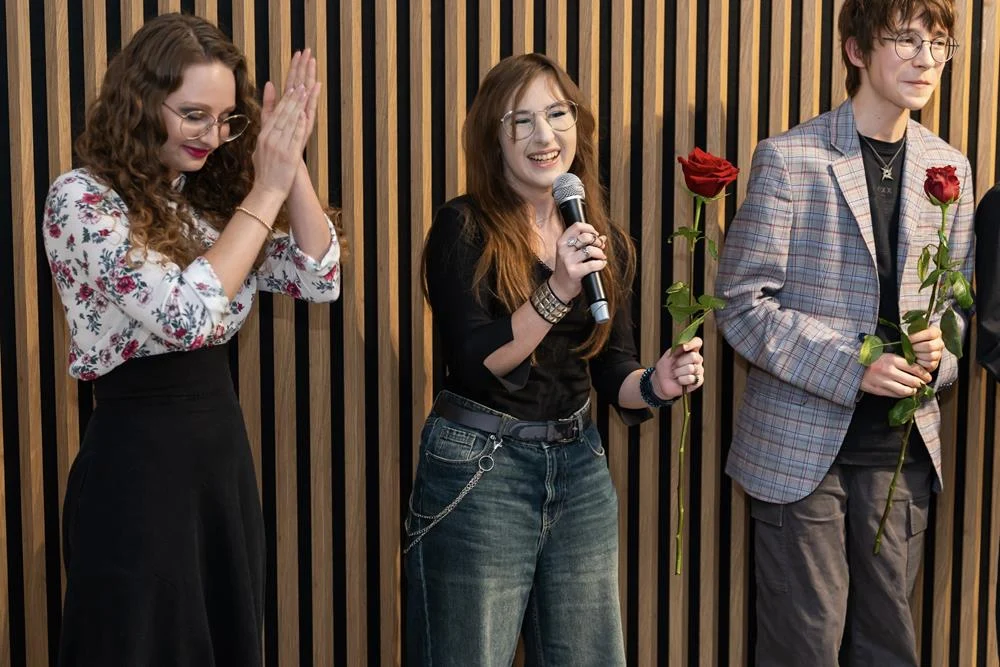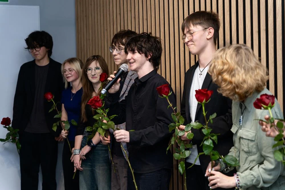 Młodzi aktorzy i aktorki zostali uhonorowani różami jako wyraz uznania za zaangażowanie i twórczy wkład. Kwiaty wręczali dyrektor biblioteki Marcin Jurkowski oraz koordynatorka projektu Ewelina Muszalska, którzy nie kryli wzruszenia i wdzięczności wobec uczestników.