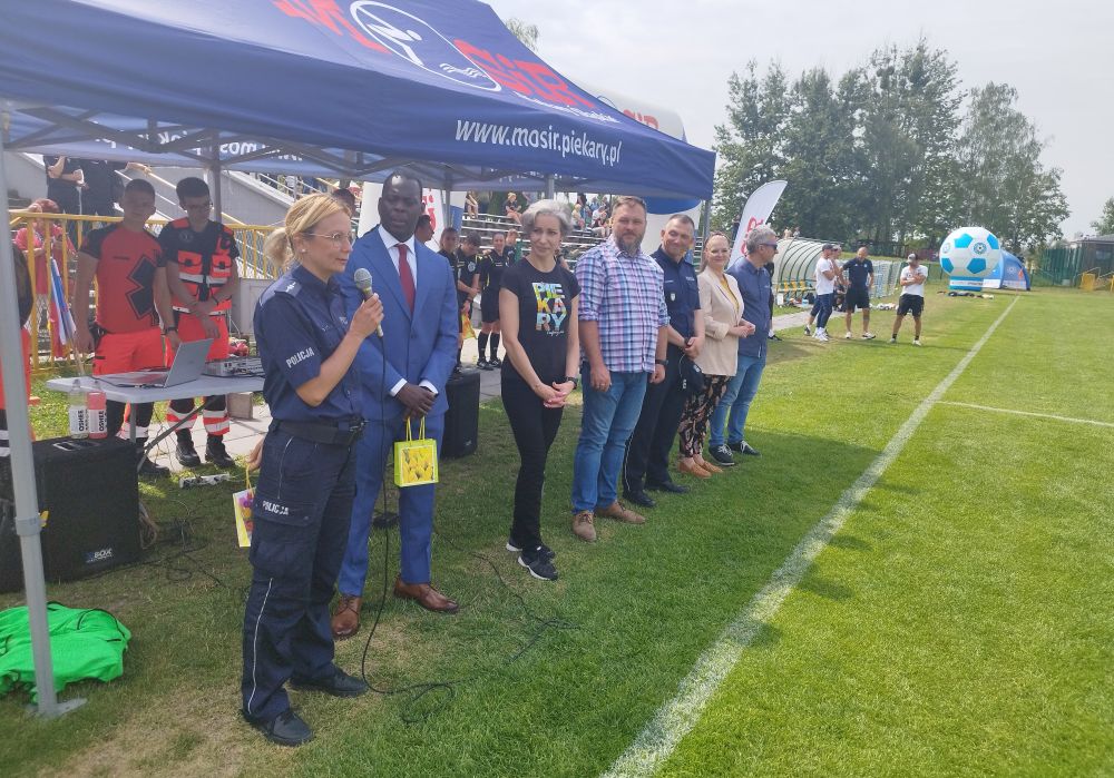 W otwarciu turnieju brali też udział Natalia Ciupińska-Szoska – wiceprzewodnicząca Rady Miasta, Łukasz Ściebiorowski – Przewodniczący Komisji Edukacji, Kultury i Sportu, a także insp. Paweł Dratwiński komendant Miejski Policji w Piekarach Śląskich. Nie mogło oczywiście zabraknąć inicjatorów całej akcji policjantki asp. Aleksandry Zydyk i Paco Mbengue – koordynatorów wydarzenia.