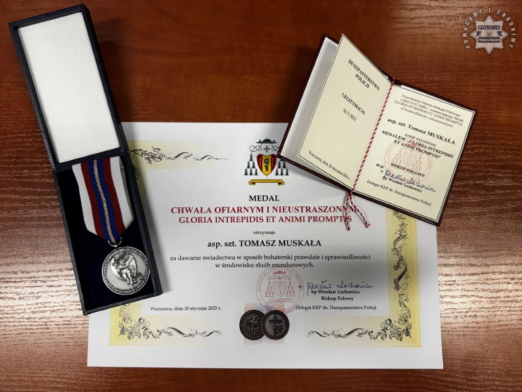 Wśród wyróżnionych znalazł się asp. sztab. Tomasz Muskała, Pełnomocnik Komendanta Miejskiego Policji w Piekarach Śląskich ds. Ochrony Informacji Niejawnych,który otrzymał prestiżowy Medal Gloria Intrepidis Et Animi Promptis – „Chwała Ofiarnym i Nieustraszonym”. Medal ten przyznawany jest za wyjątkową odwagę i poświęcenie w służbie.