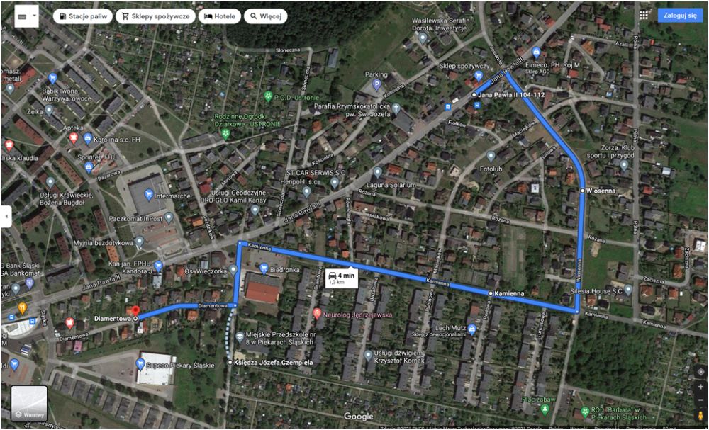 - Józefka – skrzyżowanie Jana Pawła II – Wiosennej – Jesiennej, przez ul. Kamienną – Czempiela – Diamentową,