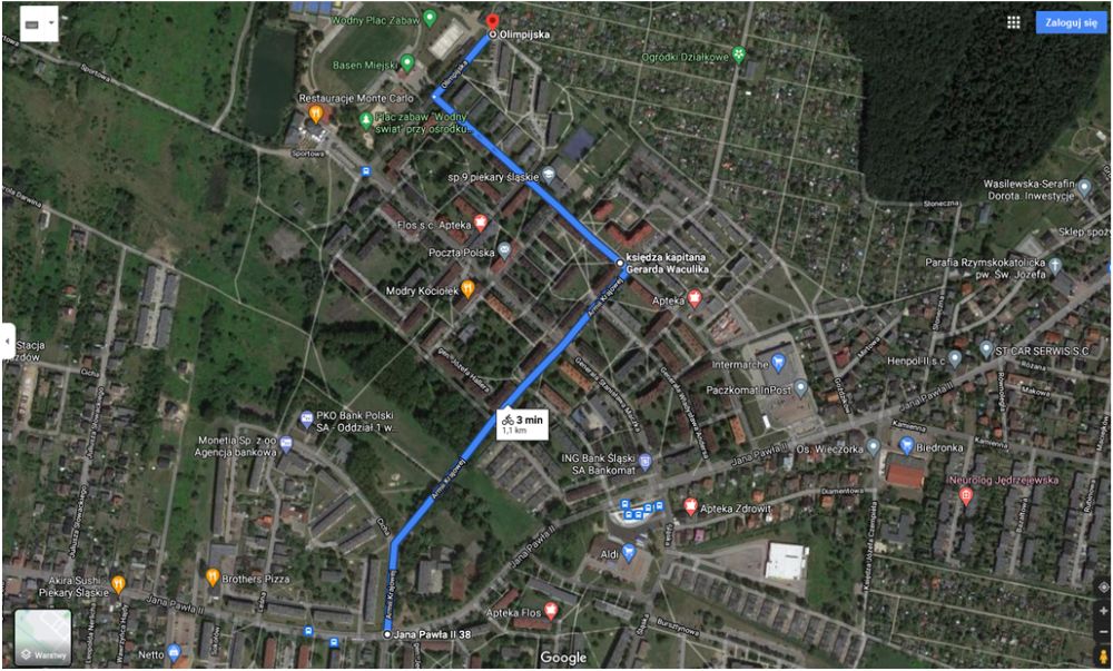 - Osiedle Lipka – od ul. Szpaków przez Bytomską, Sportową, Maczka, Kleberga, Cichą do śluzy przy skrzyżowaniu Armii Krajowej – Jana Pawła II,