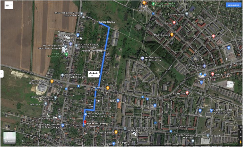 - ul. Darwina – przez Słowackiego, Krótką, Wawrzyńca Hajdy, Damrota, Konstytucji 3 Maja.