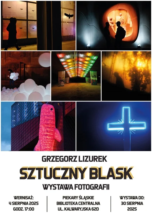 Miejska Biblioteka Publiczna im. Teodora Heneczka w Piekarach Śląskich zaprasza na wernisaż wystawy fotograficznej Grzegorza Lizurka pt. „Sztuczny blask”. Wydarzenie odbędzie się 4 sierpnia o godz. 17:00 w Bibliotece Centralnej przy ul. Kalwaryjskiej 62d. Wystawa potrwa do 30 sierpnia.