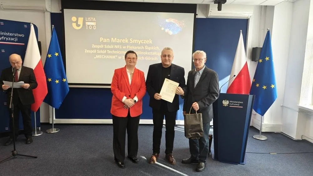 Podczas oficjalnej gali Wicepremier Krzysztof Gawkowski oraz Wiceminister Edukacji Katarzyna Lubnauer wręczyli wyróżnienia dla osób zaangażowanych w rozwój kompetencji cyfrowych w Polsce. W gronie laureatów znaleźli się także dwaj nauczyciele z Piekar Śląskich: