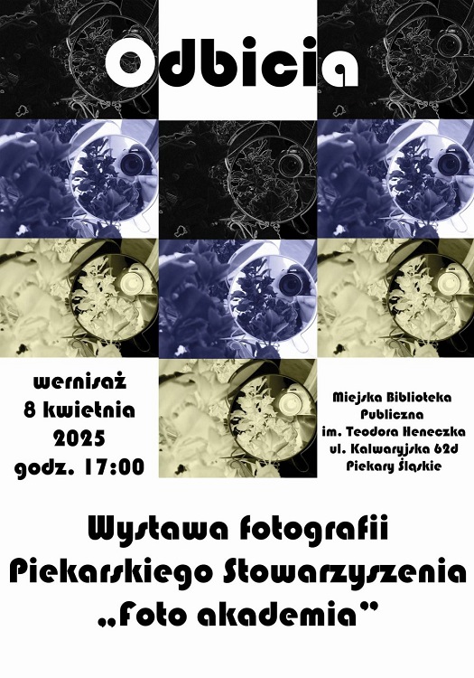 Miejska Biblioteka Publiczna w Piekarach Śląskich serdecznie zaprasza na wyjątkowy wernisaż wystawy fotografii pt. „Odbicia”, przygotowanej przez członków Stowarzyszenia „Foto Akademia”. Wydarzenie odbędzie się 8 kwietnia o godzinie 17:00 w Bibliotece Centralnej przy ul. Kalwaryjskiej 62d. Wstęp na wernisaż jest bezpłatny.